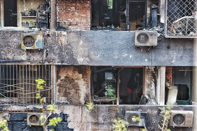 該小區(qū)4號樓1單元101的劉先生家則基本上化為灰燼。記者在他家看到,墻壁被燒成焦黑色,地上沉積著到腳踝的灰燼,整個房子被燒成毛坯房樣。“沙發(fā)、柜子這些大件物品都沒有了,廚房、衛(wèi)生間都是玻璃的,也都燒化了,還有一些字畫?!眲⑾壬f,家里藏有不少洋酒等,損失慘重。